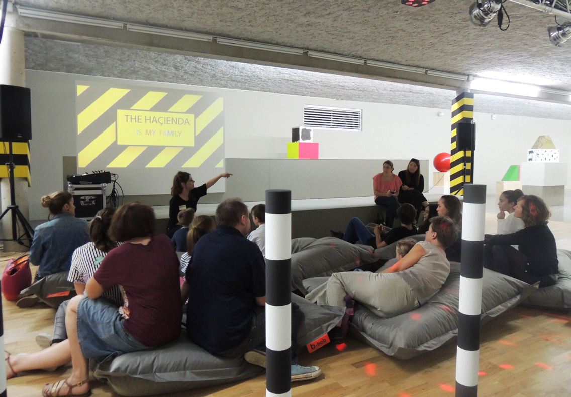 Les enfants et leurs (grands) parents partent à la découverte de l’exposition "Flatland/ Abstractions naratives #1" et participent ensemble à une activité.