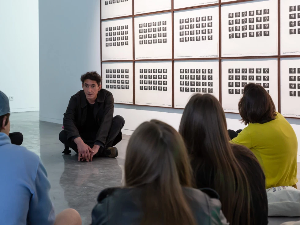 Introduction par la médiatrice sur les notions d’art contemporain, de musée et de collection. À l’aide d’une fiche d’analyse d’œuvre, les élèves en petits groupes apprennent à la décrire et à la comprendre. Puis chaque groupe présente son œuvre à l’oral devant l’ensemble de la classe. (1h30-2h)