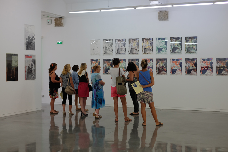 Présentation des expositions Honey, I rearrangered the collection. Posters de la collection Lempert, Développement durable de Neil Beloufa et Gravitation de Pauline Zenk aux enseignants par le service éducatif du musée.